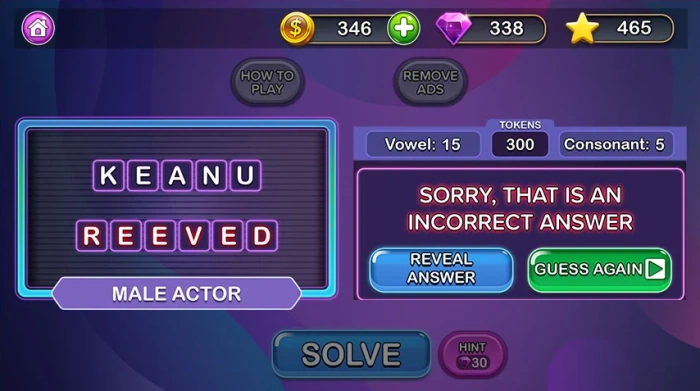 Use trivia questions to test your vocabulary and sharpen your mind. Spend points to select letters one at a time, 15 points for vowels, and 5 for consonants.