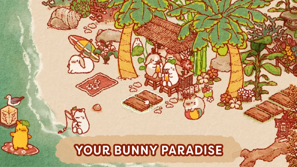 Use toys, plants, and adorable building decorations to transform your island into a whimsical bunny paradise. Unwind and take in the serene, comfortable island ambience that corresponds with your time of day.
