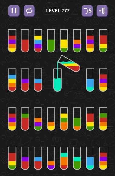 This game is perfect for those who want to practice their combinational reasoning. Make an effort to fill the bottles with water of varying hues, and then group the bottles with water of the same hue.