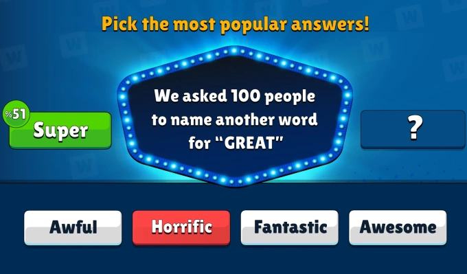 - Expert – After a brief moment, two images pop up and vanish. Get ready to put your brain to the test as you swiftly guess the word.